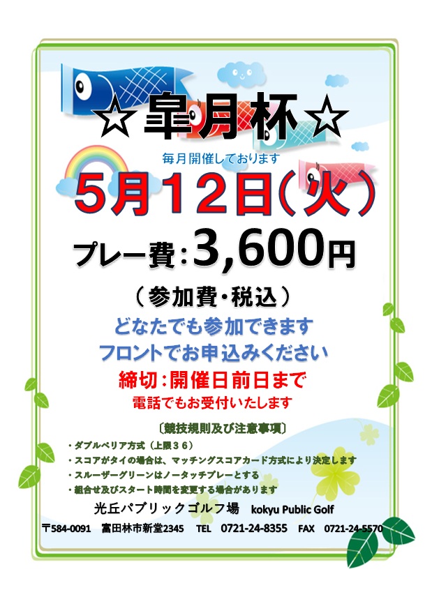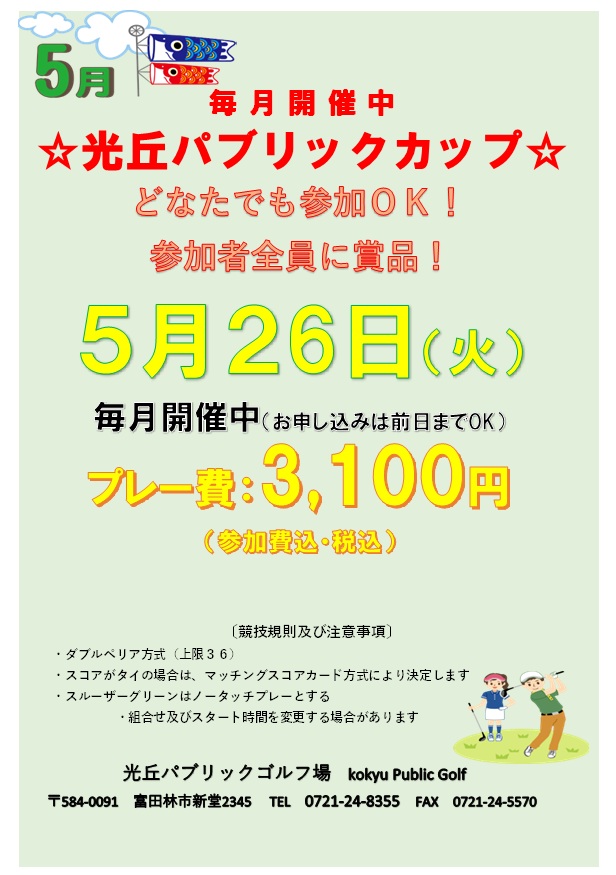 光丘パブリックゴルフ場では毎月オープンコンペを開催しております